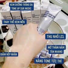 Kem Dưỡng Thể Sur.Medic+ Sáng Da & Nâng Tông 150ml là một loại dưỡng thể dành cho việc dưỡng sáng toàn thân được sản xuất bởi thương hiệu Mỹ phẩm Sur.Medic+ của Hàn Quốc. Sản phẩm chứa các thành phần như Glutathione và Niacinamide giúp nâng tông da, làm da sáng hồng tự nhiên và đồng thời tái tạo và bảo vệ da khỏi lòng nhiễm ung thư. Với công nghệ màng lọc Nano-Ro, kem thẩm thấu nhanh chóng, không gây bết rít và không để lại vết kem.